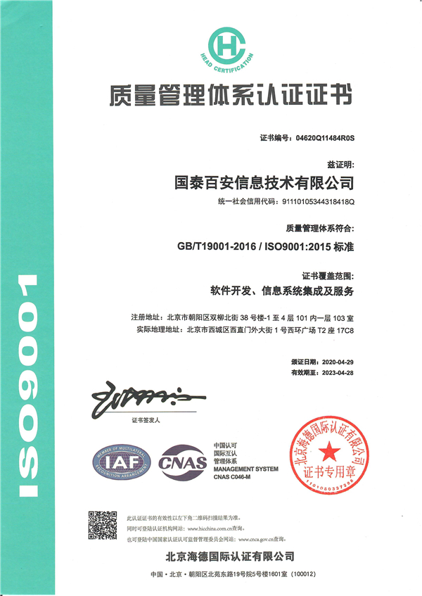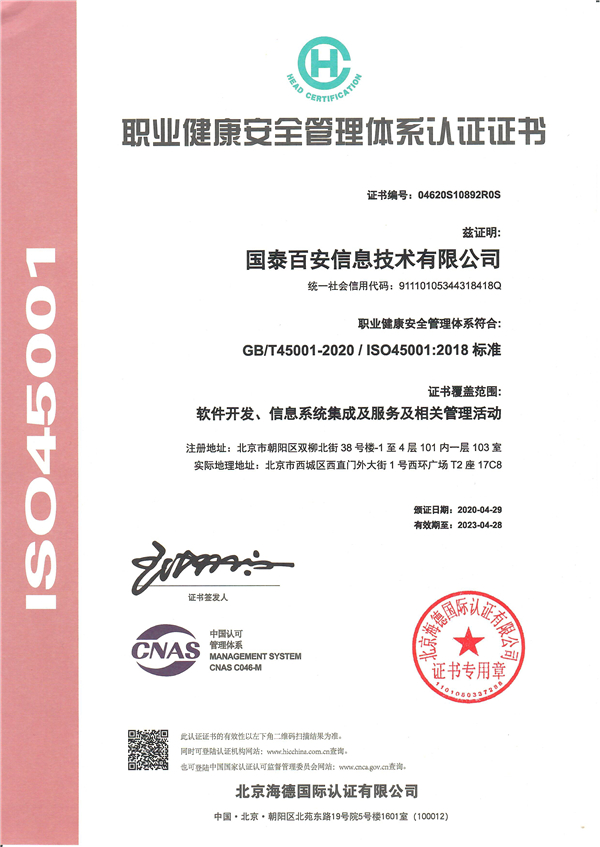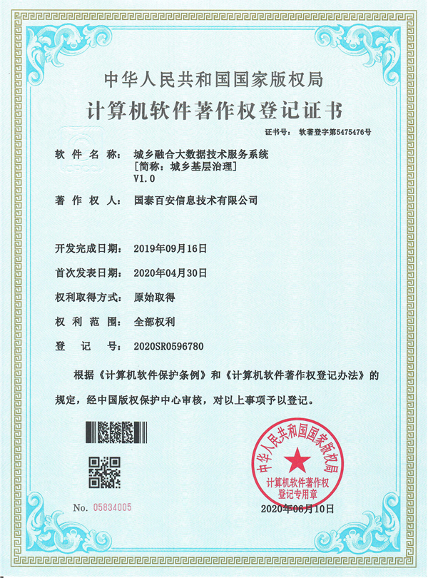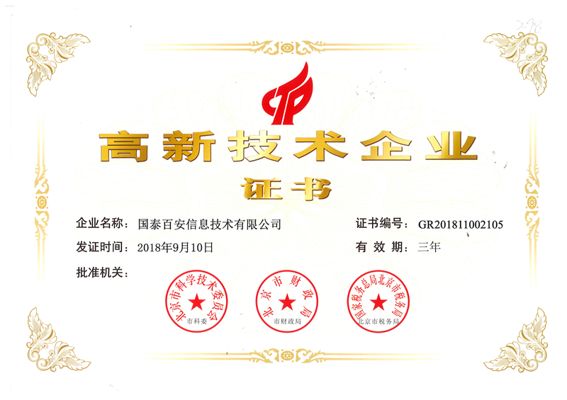 国泰百安信息技术有限公司系国家工商总局核名注册的法人企业,公司注册资本5000万元,成立于2015年,系国家高新技术企业,拥有一系列独有的自主知识产权,致力于利用大数据、互联网、物联网、人工智能、云计算等新兴数字技术和集成创新开发,开展社会大安全、城市综合管理特别是基层社会综合治理项目建设和服务工作,致力推进建设城市综合管理和社会综合治理平台建设。