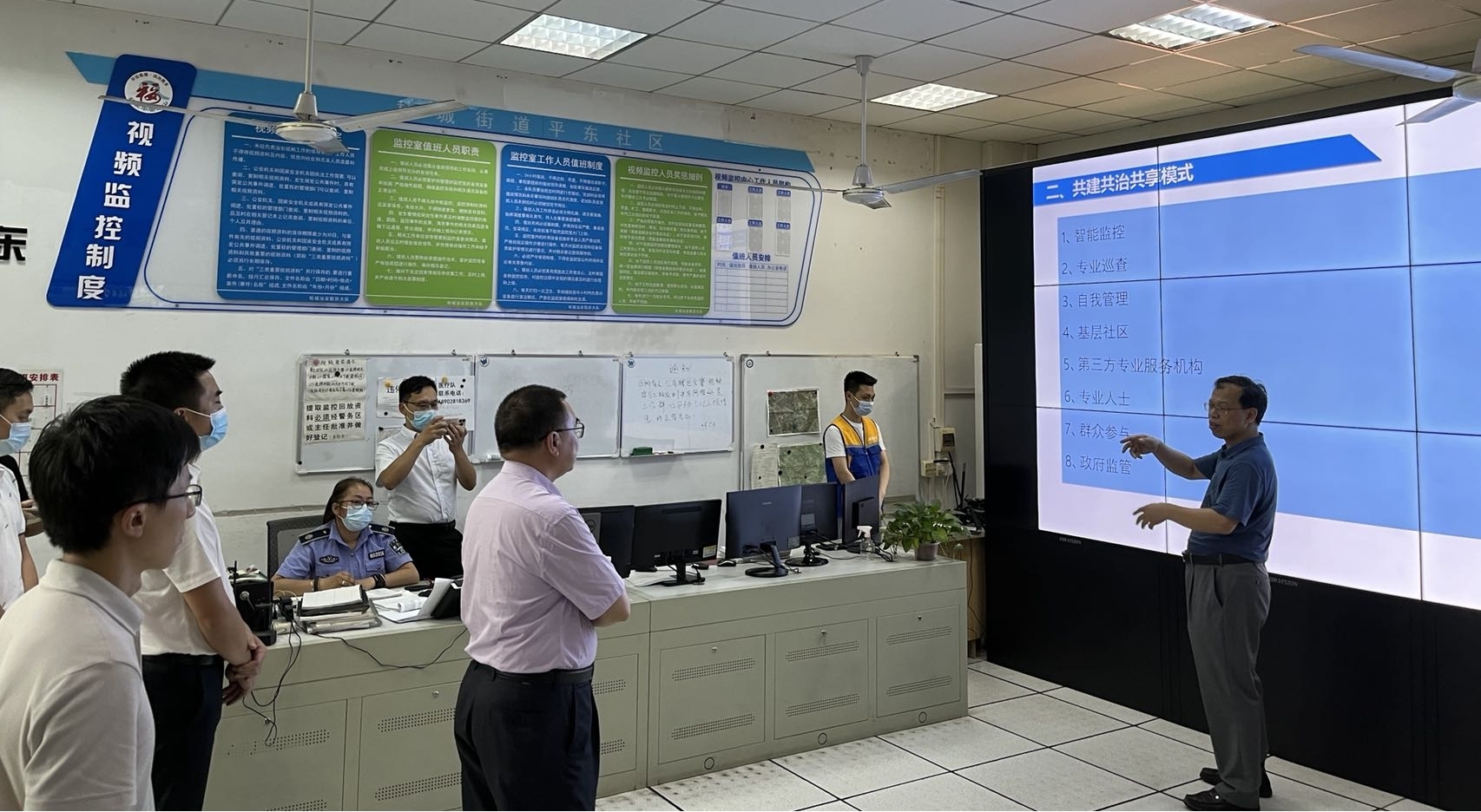 2022年6月17日下午,南海区委常委、政法委书记麦绍强、南海区政务服务数据管理局局长劳剑锋、街道党工委委员伍洲强以及相关领导前来我司项目试点社区平东社区进行现场考察调研。