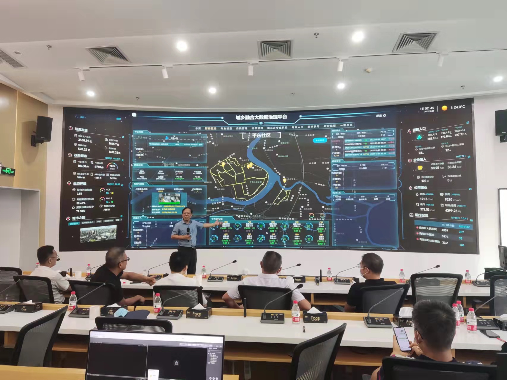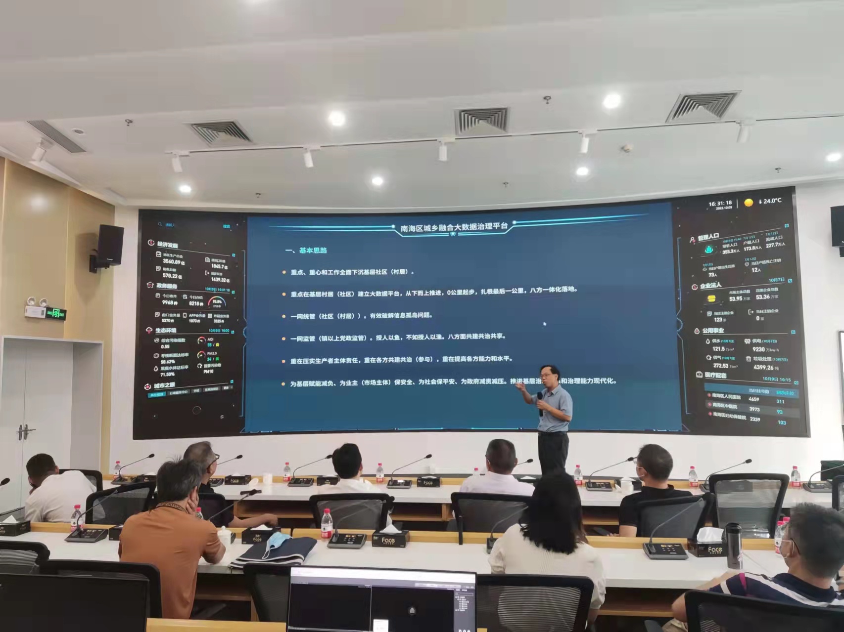 2022年10月9日下午,广东省政法委一级调研员、基层社会治理处原处长邓少君、佛山市政法委综合督导科曾大进科长和南海区政法委有关领导一行八人齐聚中控大厦就我司利用大数据进行基层社会治理项目现场进行座谈交流。会议上,我司董事长蒋建业研究员(博士)就平台建设总体思路、运营模式及实际运营效果进行了专题汇报。各位领导对项目深化发展工作提出了重要的指导意见。